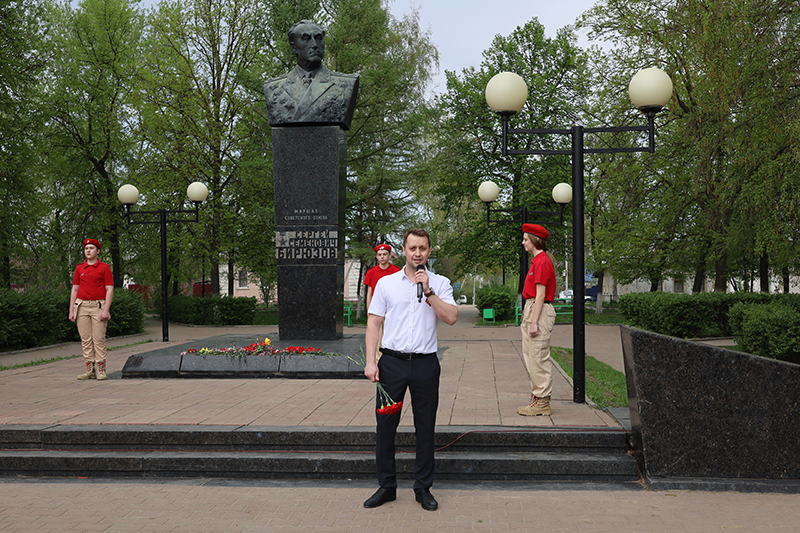 Следующим мероприятием стал митинг у памятника Маршалу Советского Союза, Герою Советского Союза, уроженцу города Скопина Сергею Семеновичу Бирюзову.