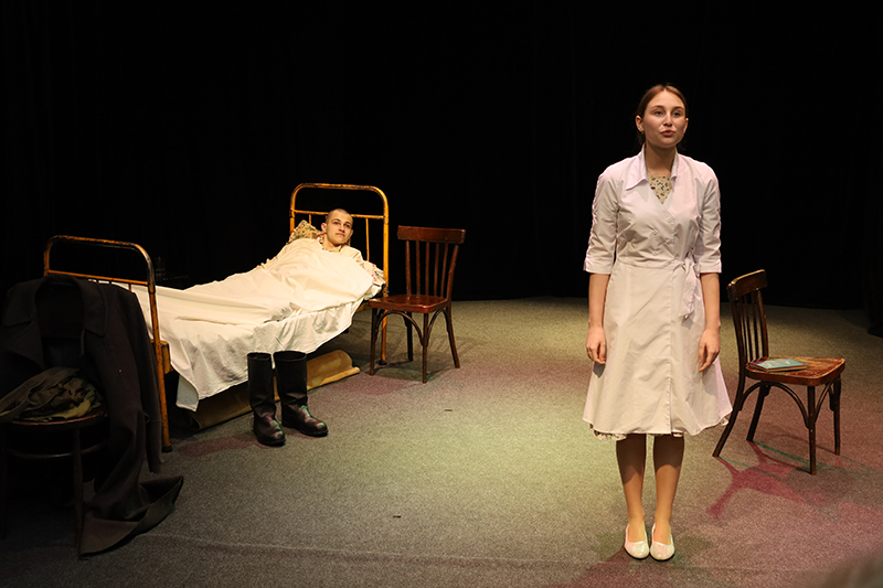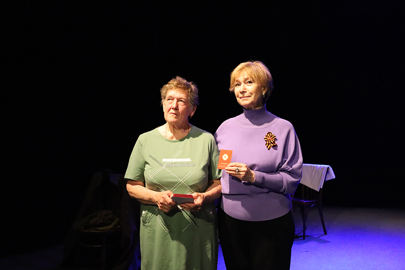 В завершении дня состоялся просмотр театральной постановки по мотивам повести Виктора Астафьева «Звездопад». Этот замечательный спектакль, рассказывающий о любви в годы Великой Отечественной войны, и встреча с его авторами – Владимиром Фердинандовичем Делем и Ириной Владимировной Дель, руководителями молодежного театра «Предел», а также с молодыми актерами, произвели огромное впечатление. На память была сделана общая фотография.