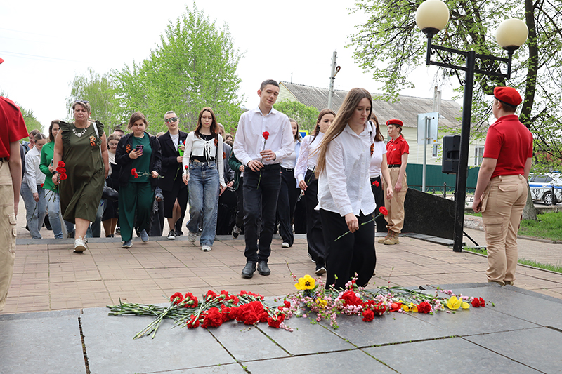 В память о героях, погибших за родную землю, была объявлена минута молчания. После участники митинга возложили к памятнику цветы.