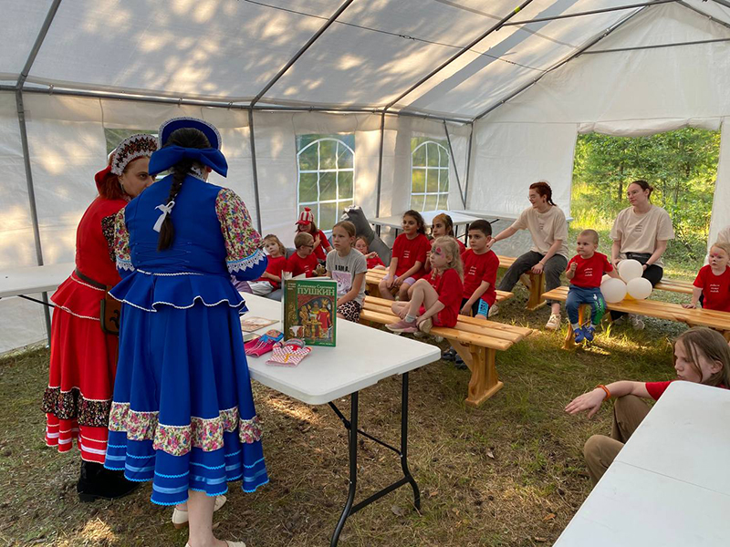 Для самых маленьких гостей руководитель любительского театра «Атмосфера» библиотеки Горького Наталия Королева и одна из актрис театра провели интерактивный спектакль «Золотая рыбка» по мотивам сказки А.С. Пушкина «О рыбаке и рыбке». Сказочница Настасья Микулишна и ее помощники рассказали сказку, поиграли в русские народные игры и пообщались с детьми о пользе чтения.