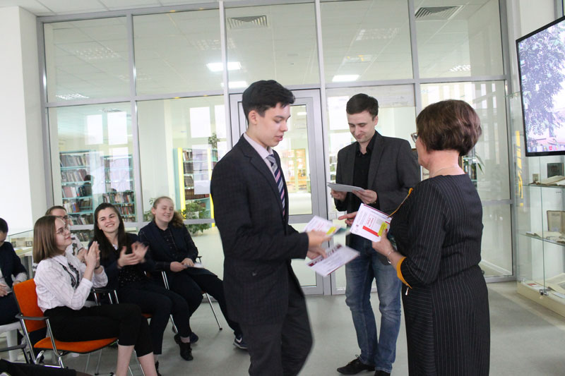 Завершилось занятие церемонией вручения сертификатов об окончании курса, которую провел ученый секретарь библиотеки имени Горького Максим Александрович Семкин. Школьники посмотрели фильм о библиотеке – удивительном мире знаний, интересных игр и, конечно, книг.