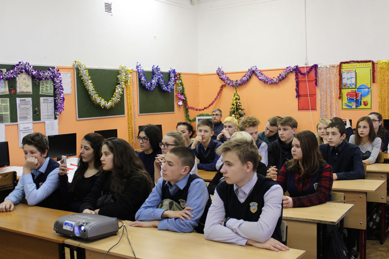 Ведущая Галина Ганина вела с учениками беседу о любви к своему Отечеству, к родному краю, к людям на примере жизни и деятельности выдающегося художника-мариниста И. К. Айвазовского и других ярких представителей культуры 19 века.