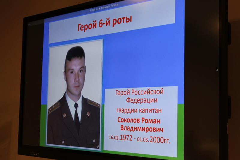 Приветственное слово прозвучало от директора библиотеки Натальи Николаевны Гришиной. О проводимой работе по сохранению достоверных сведений о героях сообщила заведующая отделом краеведческой литературы Псковской областной универсальной научной библиотеки Елена Григорьевна Киселева. Валентина Петровна Кондрашова, руководитель музея боевой славы школы № 8 имени героя Российской Федерации гвардии капитана Романа Соколова, хранит память о рязанце – участнике боя, выпускнике школы. О своем отношении к героическому подвигу десантников рассказала Ольга Александровна Уласевич, сотрудник библиотеки им. Горького, которая во время тех событий проживала в Псковской области и была знакома с некоторыми участниками боевых действий.