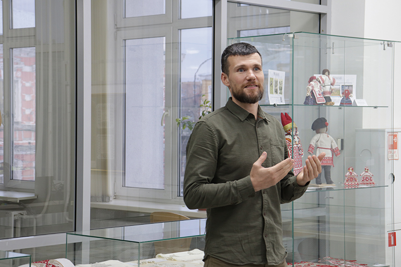 Заместитель директора по методической работе Детской художественной школы № 1, член Творческого Союза художников Александр Марьяшин поблагодарил библиотеку за возможность представить работы учеников широкому кругу зрителей. Он рассказал, что преподаватели школы передают ученикам мастерство поколений, благодаря чему сохраняются традиции Рязанской земли. На выставке представлены работы, которыми он больше всего гордится, поскольку не многим под силу овладеть народным мастерством кружевоплетения и вышивки, требующим неимоверной усидчивости.