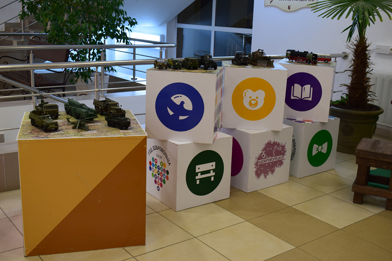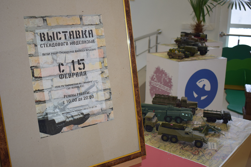 В холле библиотеки работает выставка стендового моделизма, на которой представлены модели военных автомобилей ХХ века, выполненные из бумаги. Автор коллекции – моделист-любитель Алексей Юрьевич Гренадёров.