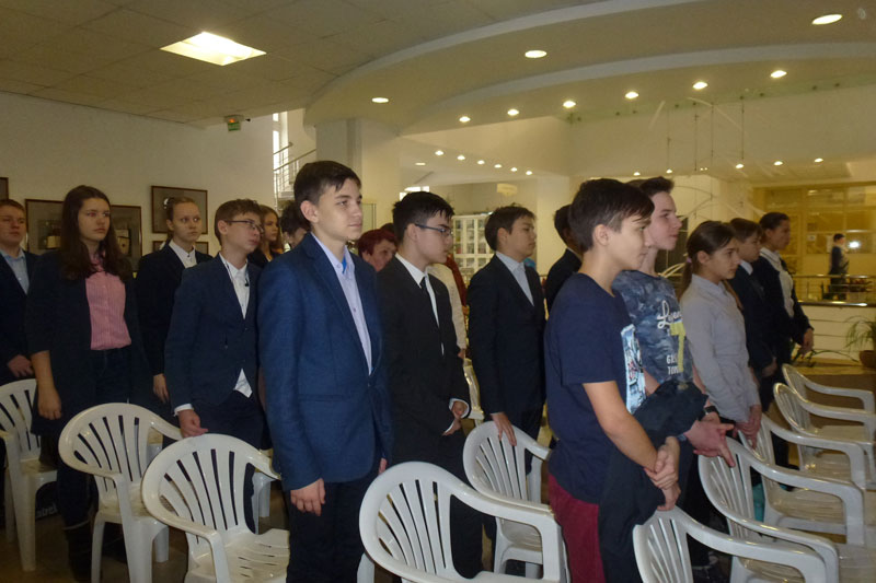 Встреча была посвящена 75-летию со дня прорыва блокады Ленинграда. Под звуки метронома присутствующие почтили память всех погибших ленинградцев минутой молчания.