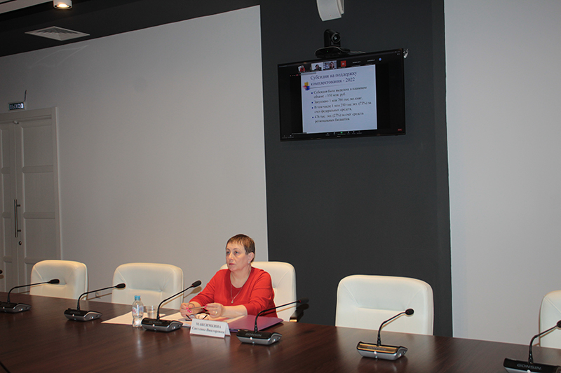 Ирина Всеволодовна, подвела итоги мониторинга, который проводился в начале 2023 года для центральных и муниципальных библиотек по субсидиям на поддержку комплектования книжных фондов 2022 года. В своем выступлении Ирина Всеволодовна неоднократно говорила об опыте РОУНБ им. Горького с библиотеками муниципальных образований региона по вопросам комплектования.