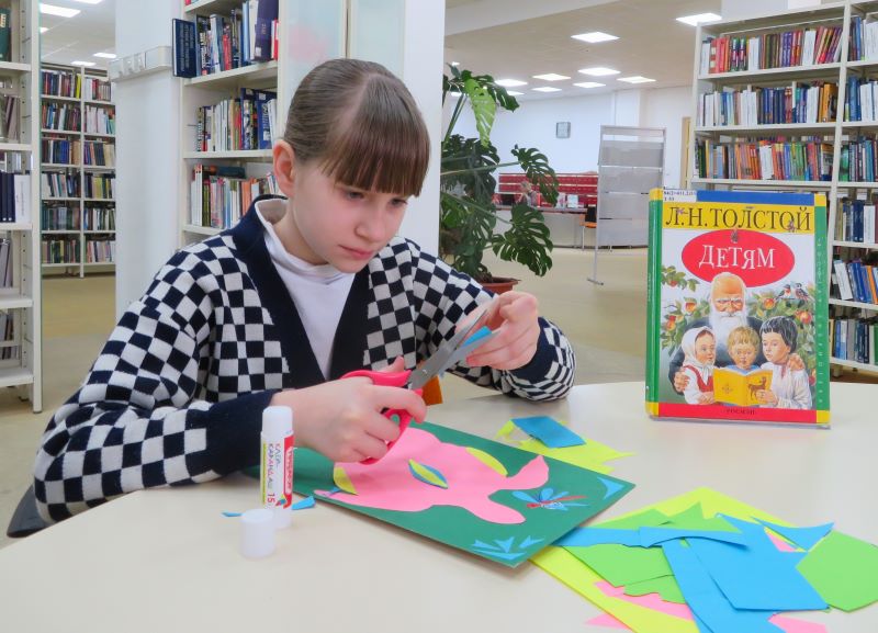Произведения Льва Николаевича Толстого любимы многими поколениями детей. Сотрудник кафедры детской литературы познакомила детвору с содержанием рассказа, интересными сведениями о жизни рептилий и предложила юным читателям изготовить панно-коллаж.
