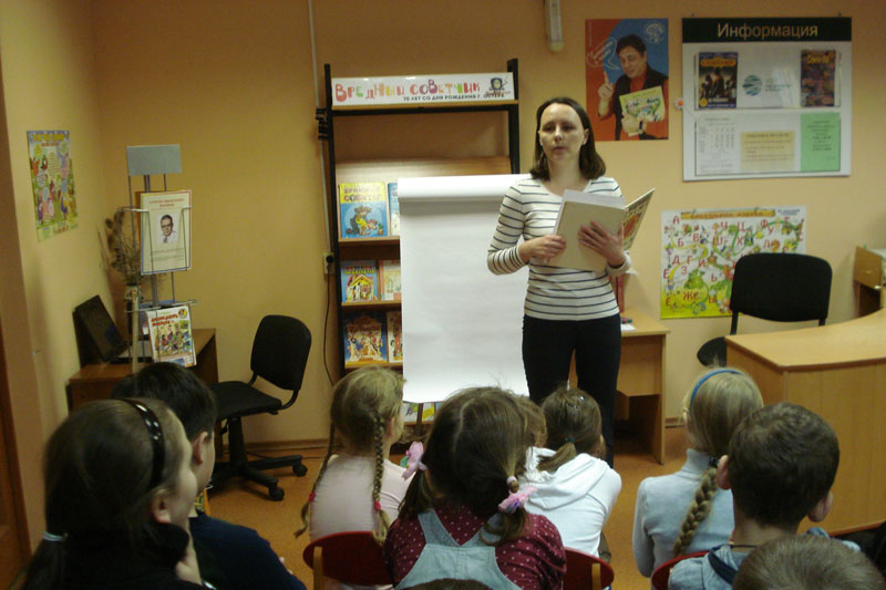Библиотекари кафедры детской литературы вместе с ребятами из начальной школы «Гармония» совершили путешествие по знаменитым сказкам Маршака.