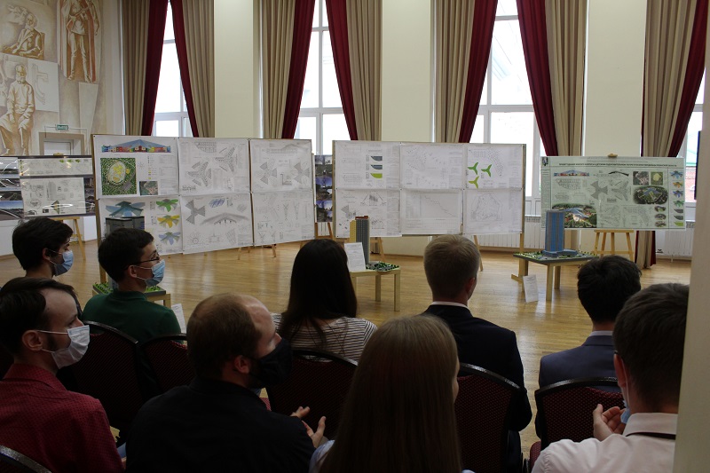 На защите были представлены следующие работы: постройка центра научно-художественного и изобразительного творчества, здания жилого корпуса в детском оздоровительном лагере в поселке Передельцы Рязанской области, гостиничного комплекса с многоуровневой подземной парковкой и т.д. Все представленные работы были высоко оценены членами государственной экзаменационной комиссии.