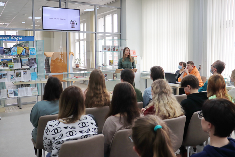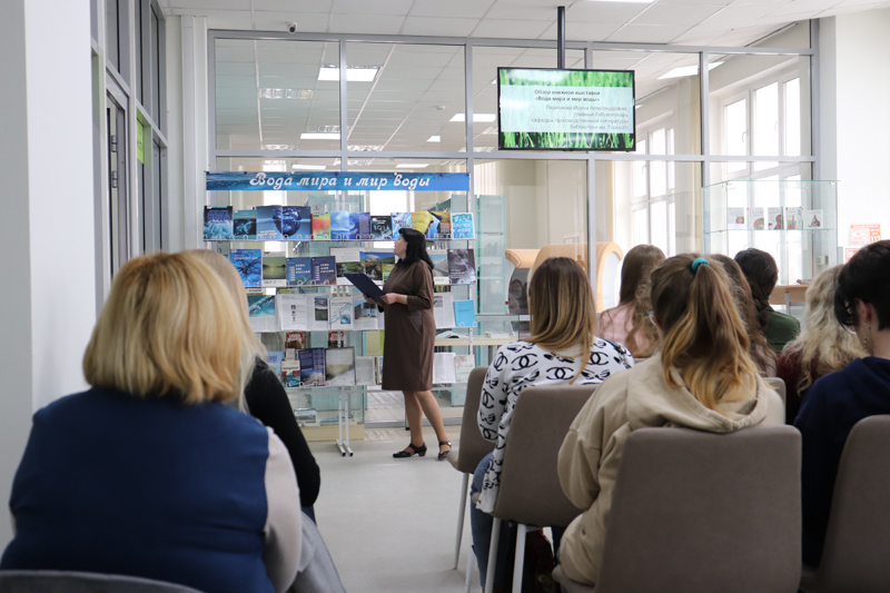 Существенным дополнением к докладам стали видеоматериалы, презентации и выставка «Вода мира и мир воды», обзор которой провела Ирина Ларионова, главный библиотекарь кафедры производственной литературы.