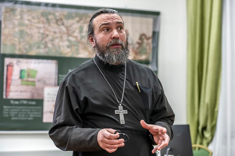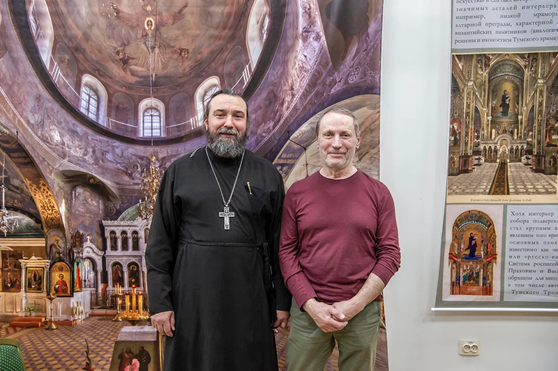 Во второй части заседания клуба иерей Михаил Митрохин рассказал об истории Тумского Троицкого храма и тумчанах, участвовавших в строительстве, украшении и сохранении храма, его священнослужителях. Троицкий храм в Туме – единственный в Рязанской области храм, где установлен иконостас из белого мрамора, изготовленный, предположительно, на харьковской фабрике итальянца Фердинанда Соммавилла. Храм расписан художниками школы Виктора Михайловича Васнецова в русском стиле в начале ХХ века. Ранее мастера расписывали Владимирский собор в Киеве.