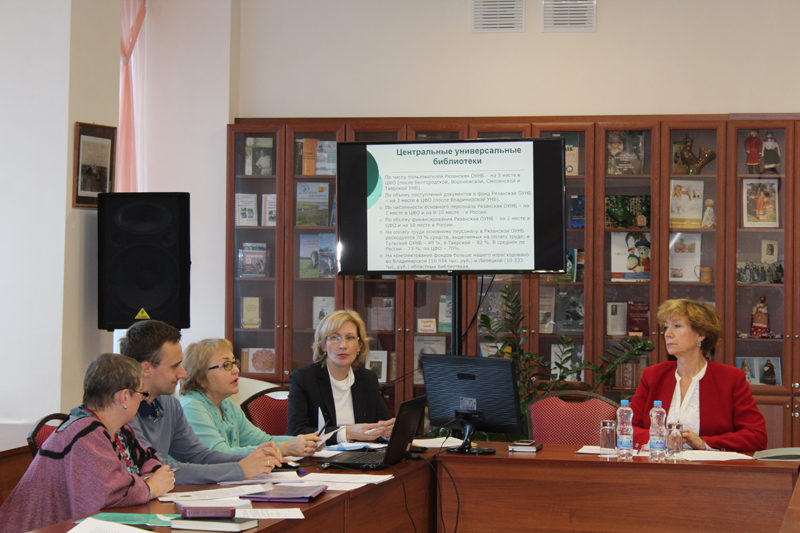 Заведующая отделом организационно-методической и образовательной деятельности Г. А. Долотина представила сравнительный анализ основных показателей деятельности библиотек системы министерства культуры РФ по России и Рязанской области за 2017 год: информацию о документообеспеченности библиотек, их внебюджетном финансировании, оснащенности техническими средствами, о доли молодежи и детей в структуре пользователей и другие данные.