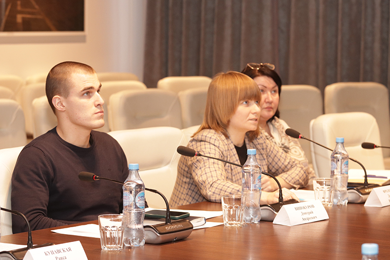 О развитии волонтерской деятельности и работе по патриотическому воспитанию молодежи в РОУНБ имени Горького рассказали руководитель отдела молодежных проектов и волонтерской деятельности, председатель Совета молодых библиотекарей Рязанской области Дарья Юрьевна Фролова и заведующий сектором «Книга памяти», заместитель председателя молодежного правительства Рязанской области Дмитрий Андреевич Винокуров. Особую важность данного направления работы библиотеки отметили в своих выступлениях заместитель председателя Областного совета ветеранов Николай Викторович Пешков и руководитель регионального отделения движения «Юнармия» Сергей Владимирович Рудь.