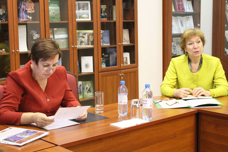 Галина Георгиевна Воробьева, председатель Рязанского регионального отделения Союза пенсионеров России, наметила возможные пути развития сотрудничества с РОУНБ им. Горького по направлению взаимного обмена информацией.