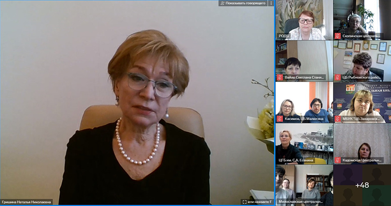 Открыла заседание Наталья Николаевна Гришина, руководитель проектного офиса, директор библиотеки им. Горького. Она поприветствовала участников встречи и проинформировала их о количестве подготовленных заявок на участие в конкурсе на создание модельных муниципальных библиотек в рамках национального проекта «Культура» в 2024 году. Всего для участия в конкурсном отборе готовится 24 заявки от 18 муниципальных образований Рязанской области.