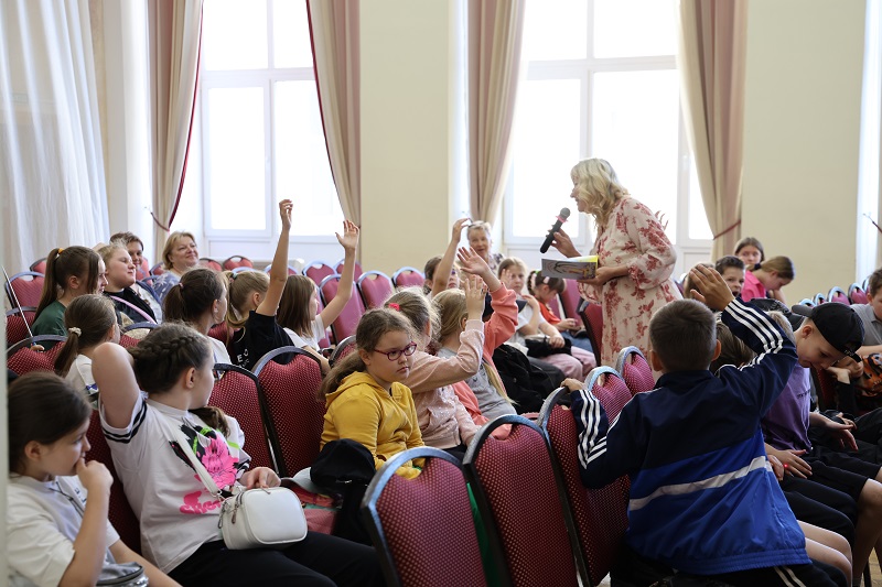 В рамках областного сетевого проекта «Летнее чтение – 2025» состоялась встреча ребят из летнего лагеря школы № 1 с детским поэтом Людмилой Сорокиной, организованная библиотекой совместно с Рязанским областным Советом женщин.