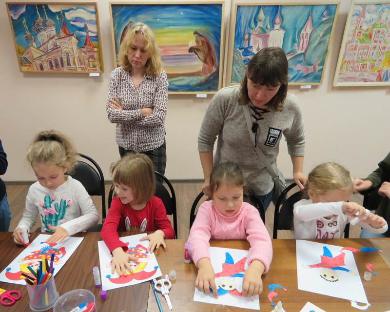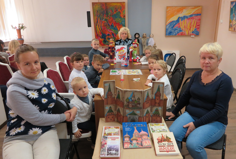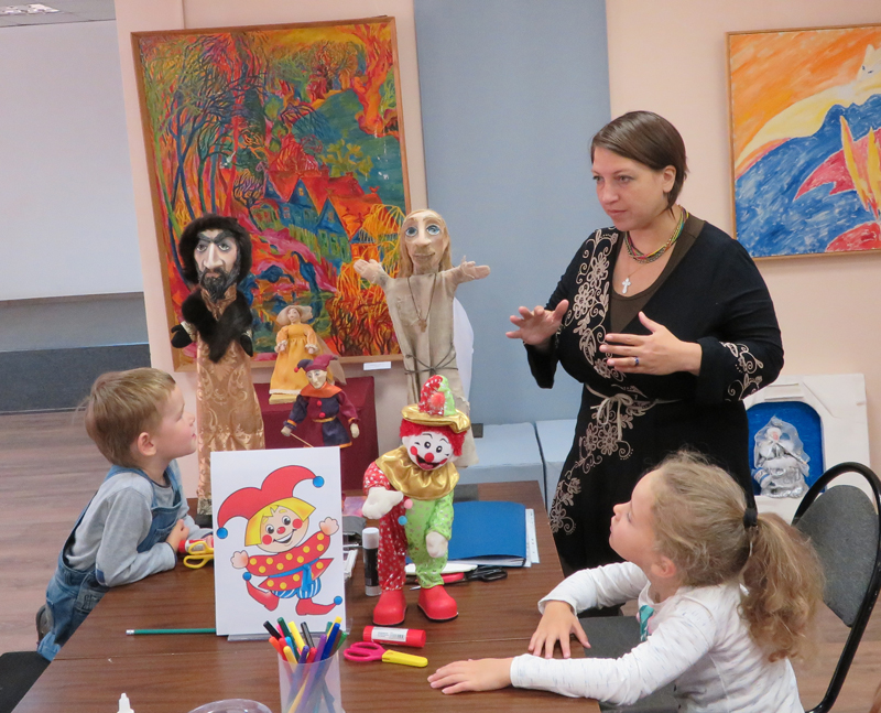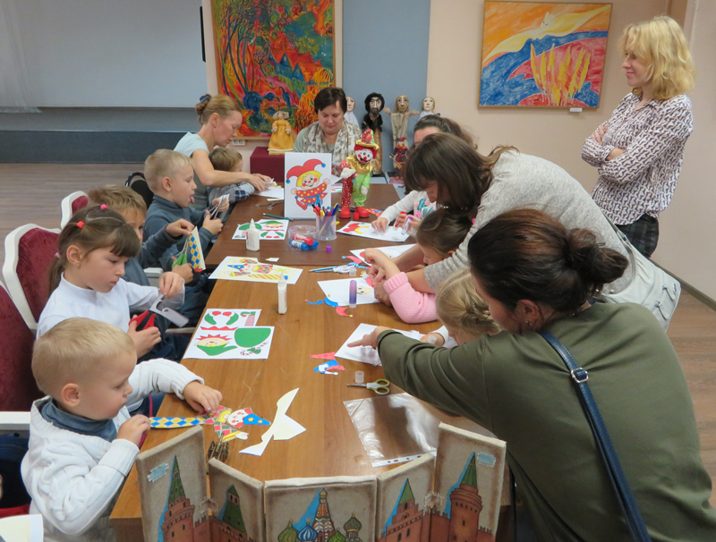 Ребятишки познакомились с профессиональным художником-постановщиком кукольного театра Ириной Сельмен, ее декорационной композицией «Петрушечный театр» и удивительными куклами из авторской коллекции. Петрушки Ирины Сельмен – необычные персонажи. Это чудаки, которые, по мнению автора, по-своему украшают мир. Они созданы из текстиля, пластика, глины, но внутри каждого, без сомнения, душа. Все желающие смогли сделать яркие фото на память с понравившейся куклой.