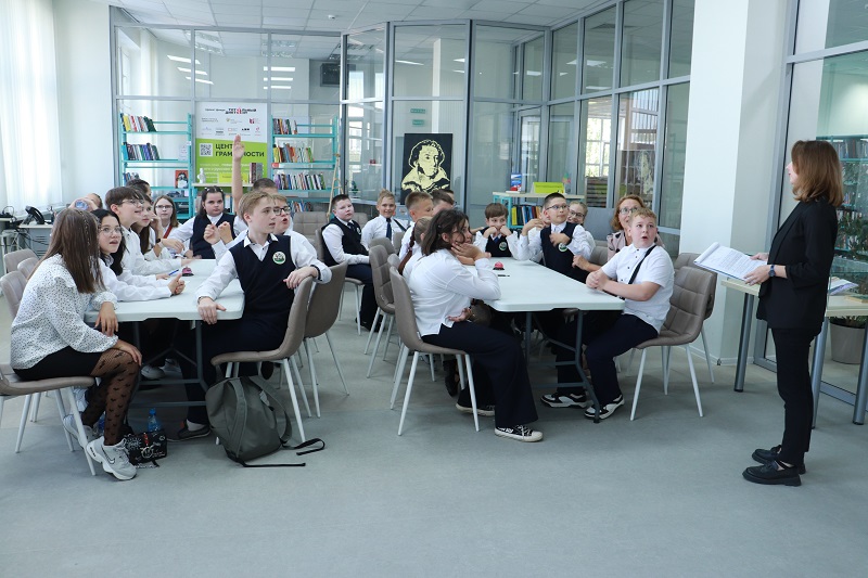 В центре грамотности для шестиклассников прошла интеллектуально-развлекательная игра «Мы – грамотеи!». Разделившись на команды, ребята расставляли ударения, вспоминали значение устаревших выражений, заменяли слова синонимами, стараясь сохранить смысл предложений. Все успешно справились с заданиями, а капитаны команд показали свои знания в финальном конкурсе.