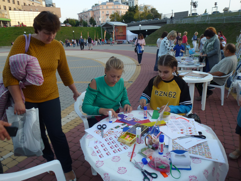 В рамках фестиваля «Встречи на Почтовой» библиотека имени Горького приняла участие в городском празднике «Волшебная страна знаний». Мы предложили рязанцам и гостям города сделать своими руками книжные закладки и поучаствовать в познавательной викторине на школьную тему.