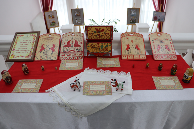 На протяжении всего дня в Центре литературы по искусству работала книжно-иллюстративная выставка «Жемчужины России», на которой были представлены книги и статьи из фондов библиотеки о традиционных промыслах Рязанского края. Прекрасным дополнением к выставке стали работы учеников Детской школы искусств № 9.