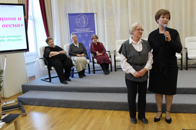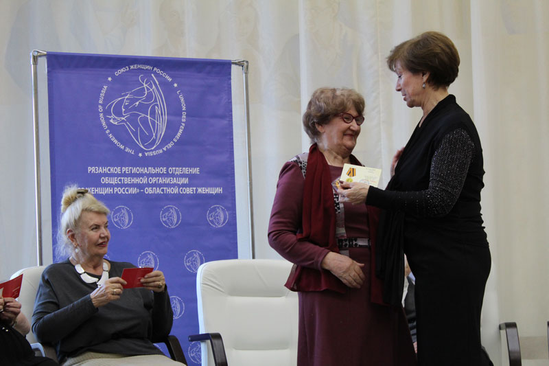 Еще одним событием встречи стало чествование женщин, внесших большой вклад в становление и развитие женского движения, в работу по защите интересов женщин, семьи и детей. Наталья Николаевна Гришина вручила ветеранам и активистам Рязанского областного совета женщин памятные медали «Дочерям Отчизны» и медали Союза женщин России.