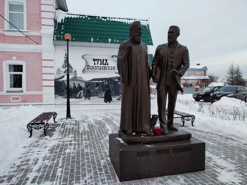 19 декабря в центре Мещеры – поселке Тума Клепиковского района состоялось торжественное открытие памятника-ансамбля, представляющего собой двухфигурную композицию протоиерея Стефана Ивановича Остроумова и его сподвижника – земского врача Владимира Павловича Клевезаля, которые мило беседуют во время прогулки. Особую теплоту и душевность памятнику придает наличие чудесного кота, устремившего свой взор на стрекозу, которая устроилась под пиджаком В. П. Клевезаля.
