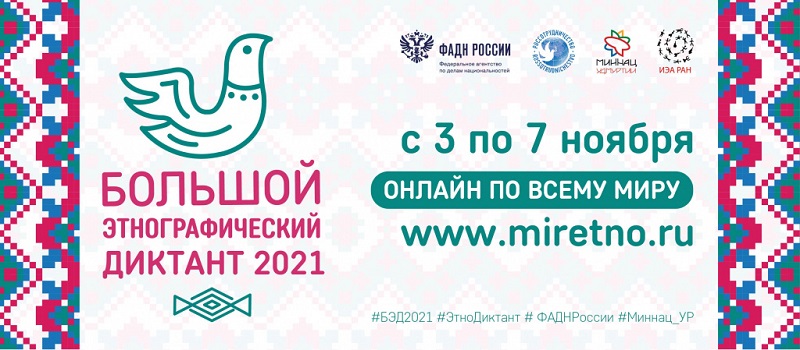 «Народов много – страна одна!» — под таким лозунгом в шестой раз состоится Международная просветительская акция «Большой этнографический диктант». Акция проводится в единый период – с 3 по 7 ноября в онлайн-формате на сайте www.miretno.ru и традиционно приурочена к празднованию Дня народного единства.