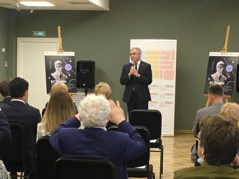 Министр культуры и туризма Рязанской области Виталий Попов, директор Государственного музея-заповедника С.А. Есенина Борис Иогансон и директор библиотеки им. Горького Наталья Гришина приняли участие в открытии выставки «Есенин. «Живите так, как вас ведет звезда…» К 125-летию со дня рождения поэта».
