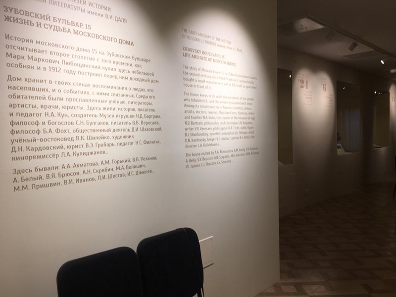 Выставка открылась 8 сентября в центральном здании Государственного музея истории российской литературы имени В.И. Даля на Зубовском бульваре – отделе «Доходный дом Любощинских-Вернадских» (г. Москва).