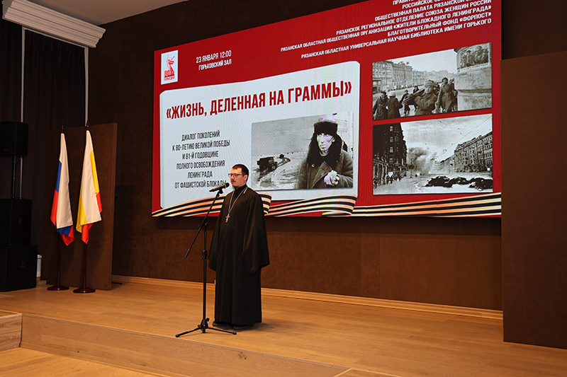 Иерей, председатель молодежного отдела Рязанской епархии Даниил Маслов поблагодарил администрацию библиотеки, ветеранов-блокадников за возможность выступить на «таком сильном мероприятии». «Я желаю всем нам помнить, что мы – наследники великих людей. И мы не имеем права их подвести. Я желаю всем нам увидеть новую Победу, в которую каждый из нас вносит свой вклад», – подчеркнул иерей Даниил.