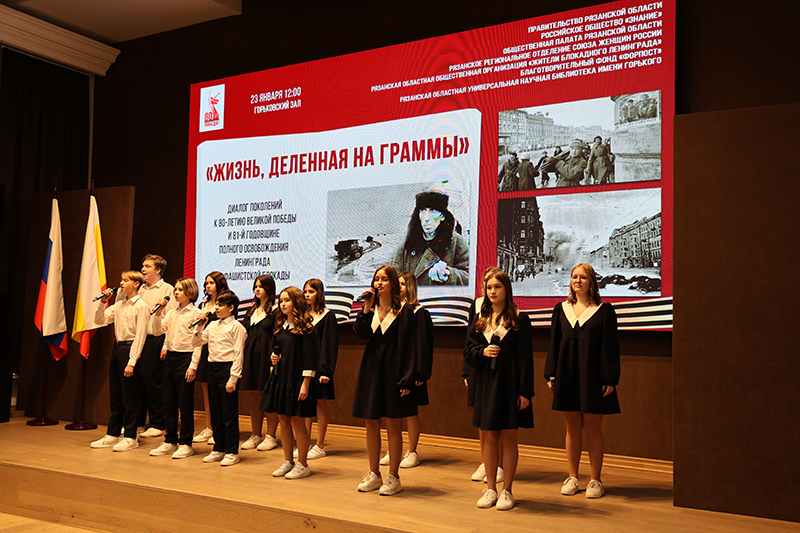 На мероприятии прозвучали музыкальные произведения, стихи и воспоминания о блокаде и Великой Отечественной войне в исполнении воспитанников театра-студии «Ювента» Центра детского творчества «Южный» (руководитель – Юлия Пономарева), Юрия Леонтьева, солистов студии эстрадного вокала «Импровизация» школы № 75 (руководители –Светлана Новичкова и Светлана Каменева), Варвары Боковой, ученицы СОШ № 14, участников Образцового ансамбля Рязанской области «Мед» (руководитель – Елена Медынская).