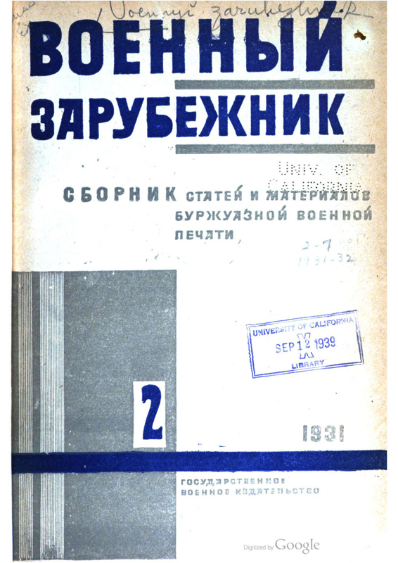 Первый номер «Военного зарубежника» увидел свет в 1921 г. До 1973 года журнал выходил со значительными перерывами (1921 – 1926; 1931 – 1941; 1956 – 1973) в издательстве «Красная звезда». На его страницах освещалась степень готовности иностранных армий к ведению войны, печатались обзоры о боевых действиях в ходе Первой мировой и Гражданской войн, а также отзывы зарубежных авторов о Красной армии. В 1930-х гг. появляется много публикаций, отражающих последние военно-теоретические веяния в ведущих зарубежных армиях. В их числе печатаются такие статьи, как «Поддержание превосходства в воздухе в сухопутной войне», «Экономическая подготовка к войне», «Проблемы бактериологической войны», «Управление на расстоянии по радио».