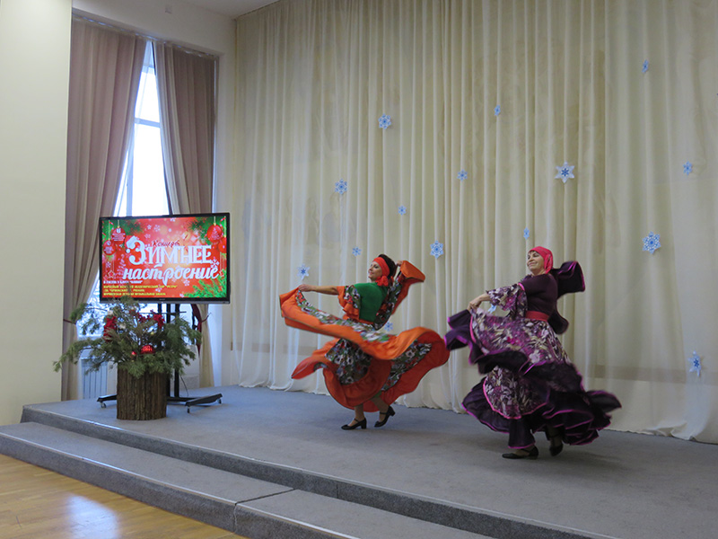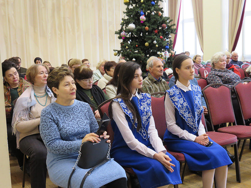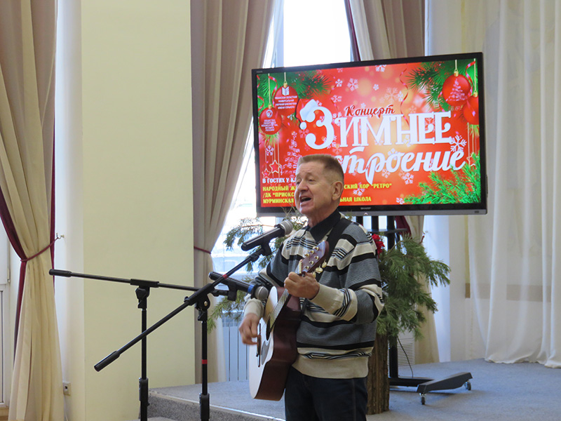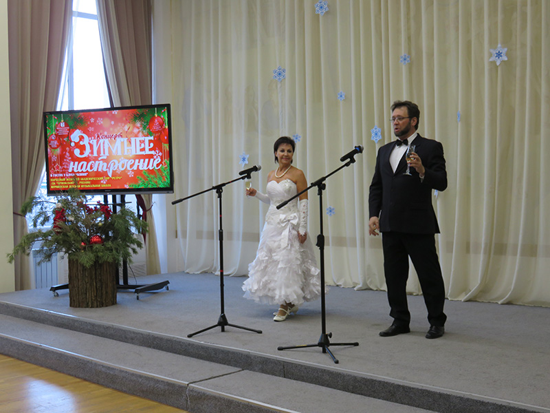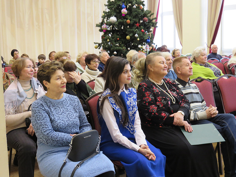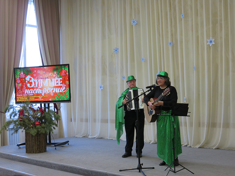 На протяжении всего концерта звучали новогодние, русские народные песни, знаменитые романсы русских и зарубежных композиторов, вокальная классика иностранных исполнителей. Прекрасные голоса, милые сердцу мелодии подарили праздничное настроение. Зрители с удовольствием подпевали артистам новогодние песни: «Кабы не было зимы», «Три белых коня», «У леса на опушке».
