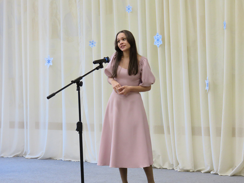 Ведущая и руководитель хора Марина Сарахманова поздравила всех собравшихся с Новым годом и Рождеством Христовым.