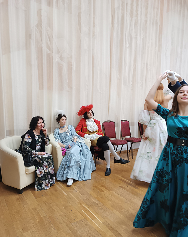 Более трех часов участники без устали кружились в танцах разных эпох: вальсы сменялись польками, кадрили контрдансами, а полонез маршем, всего и не перечислить. Даже сам Петр I не смог пропустить такое событие и с удовольствием присоединился к празднику!