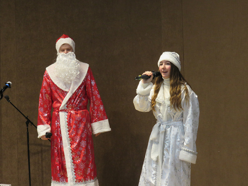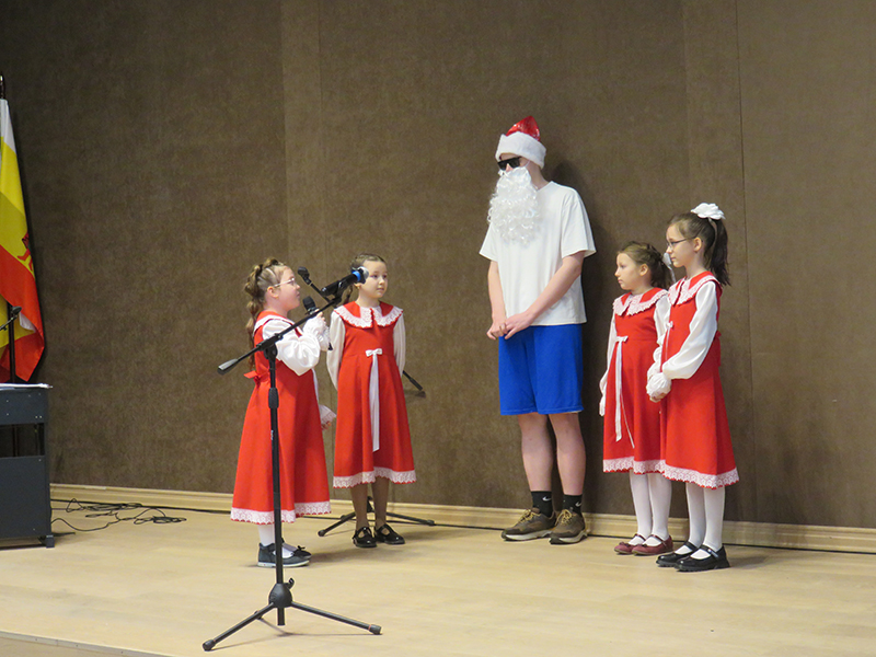 Целый калейдоскоп прекрасных песен прозвучал в сольном исполнении учащихся школы, которые зарядили всех новогодним настроением! Это были песни Е. Подгайца «Под Новый год», Л. Бирнова «Елочка-краса», Н. Пескова «Что под елкой спрятано?», Л. Абеляна «Новогодняя песенка», А. Филиппенко «Саночки», Ю. Чичкова «Снежная сказка зимы», В. Шаинского «Дед Мороз» и другие.