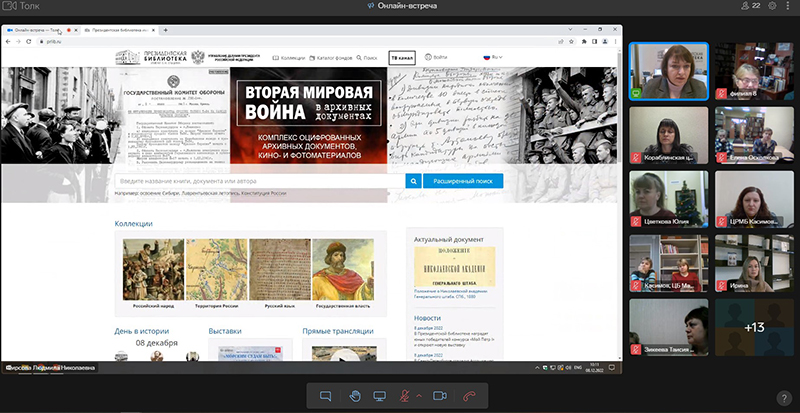 Руководитель регионального центра продемонстрировала портал Президентской библиотеки, возможности простого и расширенного поиска, рассказала об особенностях работы Удаленного читального зала.