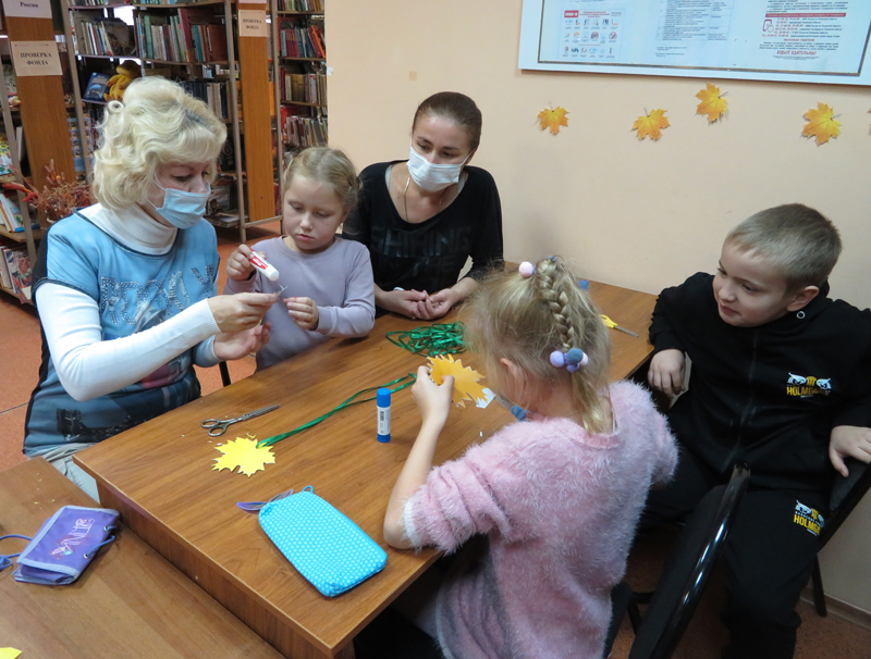 Необыкновенно красивы кленовые листья осенью. Эту красоту можно надолго сохранить, если сделать осеннее украшение своими руками. На сентябрьском занятии клуба «Домовенок» ребятишки изготавливали подвеску в виде кленового листочка из цветной мелованной бумаги.