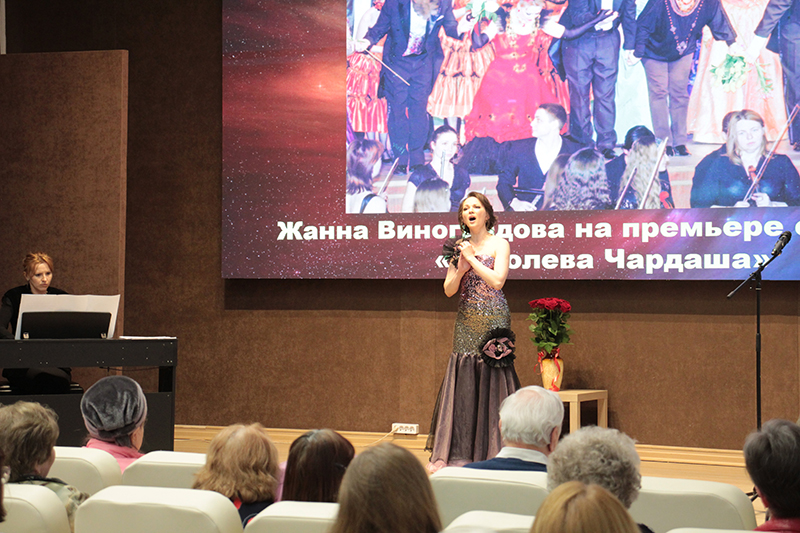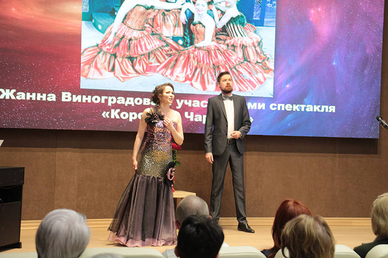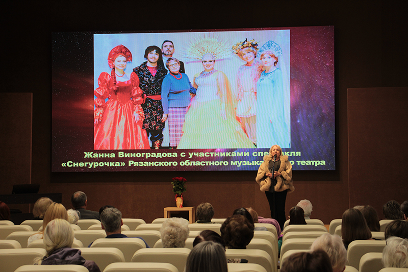 Ярким украшением вечера стали музыкальные номера артистов Рязанского областного музыкального театра – солистов Алены Силивестровой и Станислава Грязнова, Натальи Нелюбиной и Алексея Никифорова, концертмейстера Елизаветы Шеховцовой. Они подарили зрителям знаменитые арии и дуэты из спектаклей «Снегурочка» и «Королева чардаша». Перед мероприятием все зрители могли познакомиться с материалами выставки «Жизнь. Женщина. Театр», которая рассказывала о творческом пути народной артистки России Жанны Виноградовой.