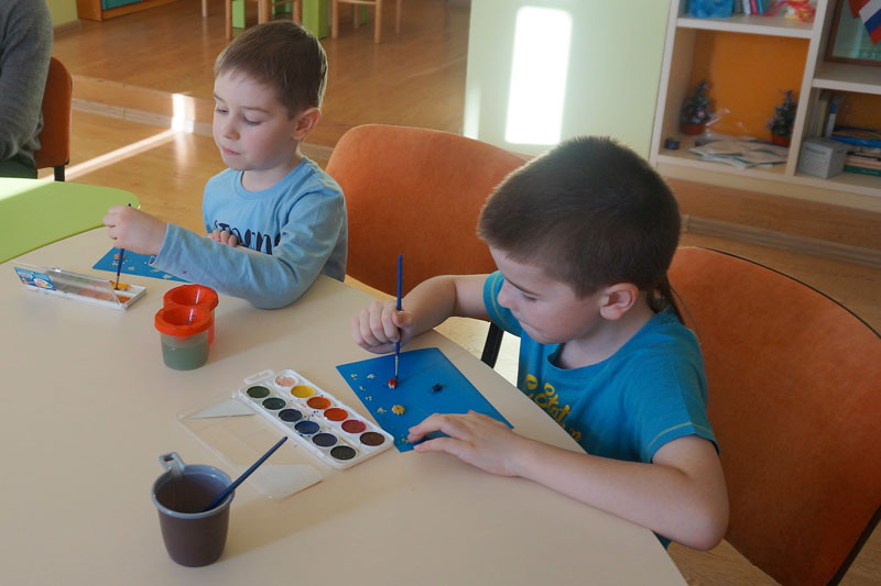 Работая над такими поделками, перебирая макароны разной формы и крупу, ребята зарядились отличным настроением.