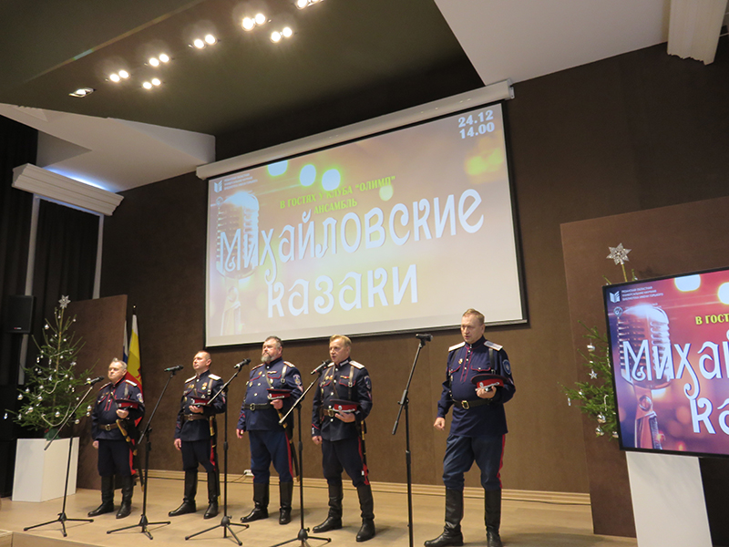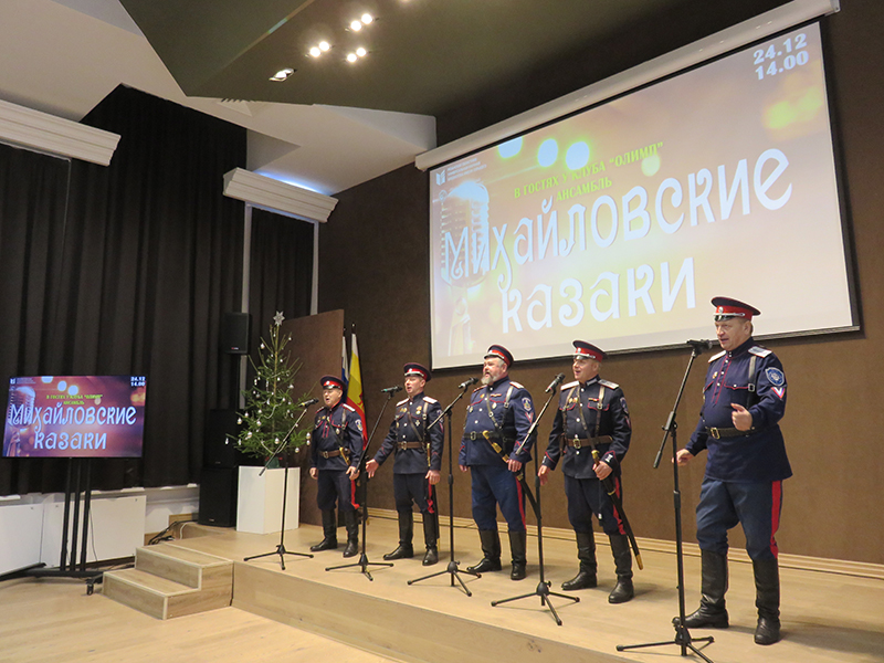 Под занавес уходящего года в клубе «ОЛИМП» Горьковской библиотеки состоялся концерт ансамбля «Михайловские казаки» Михайловского станичного казачьего общества (походный атаман Виктор Проходцов, художественный руководитель Александр Воронин, солисты Сергей Самошин, Виктор Проходцов, Федор Пекур).
