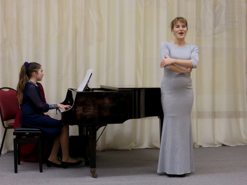Настоящим подарком всем присутствующим стало выступление бывших учеников школы, а ныне студентов музыкального колледжа им. Г. и А. Пироговых Валентина Акимова и Марьяны Плюхиной, а также преподавателя школы Софии Николаевны Мироновой, которая и завершила программу.