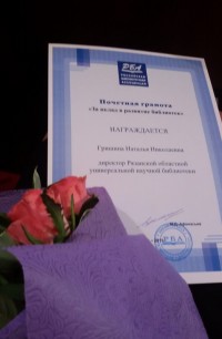 Сегодня состоялось закрытие Всероссийского библиотечного конгресса. На заключительном пленарном заседании директор Рязанской областной универсальной научной библиотеки имени Горького Наталья Гришина за вклад в развитие библиотек награждена Почетной грамотой Российской библиотечной ассоциации.