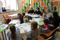 На мастер-классе дети вместе с мамами создавали свои рисунки в технике правополушарного рисования.