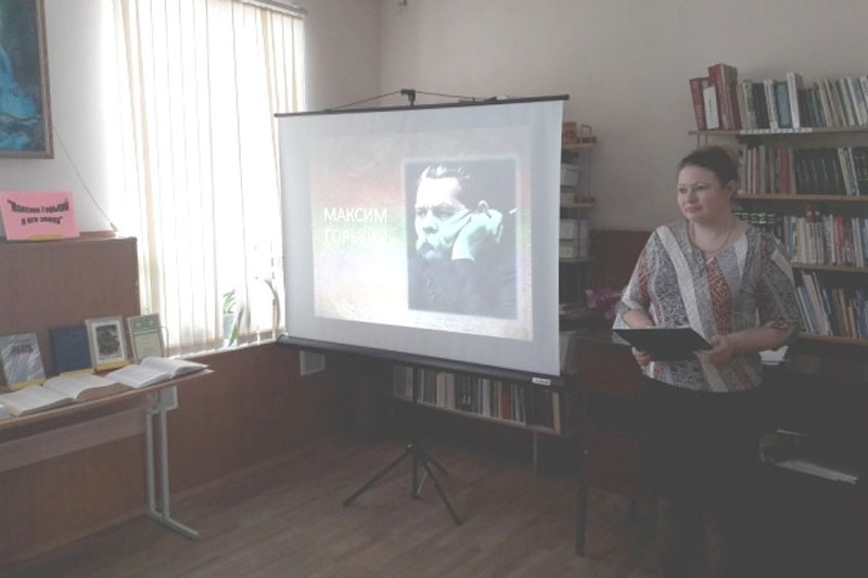 Ведущие мероприятия Оксана Закурдаева и Ирина Двадцатова рассказали о жизненном и творческом пути Максима Горького, поговорили о его произведениях. Его книги актуальны до сего времени. Творчество писателя близко и дорого нам, так как проникнуто любовью к человеку.