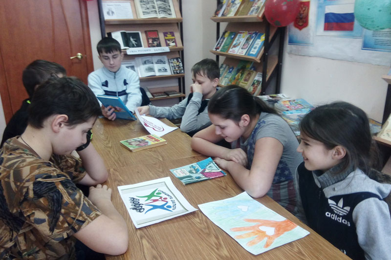 На мероприятии библиотекарь познакомила ребят с эмблемой этого года, рассказала о волонтерах. Поговорили о книгах, в которых раскрывается добро и помощь, сострадание и милосердие. На примере книг «Винни Пух и все-все-все» и «Приключения Незнайки и его друзей» школьники поняли, как необходимо вести себя в различных жизненных ситуациях.