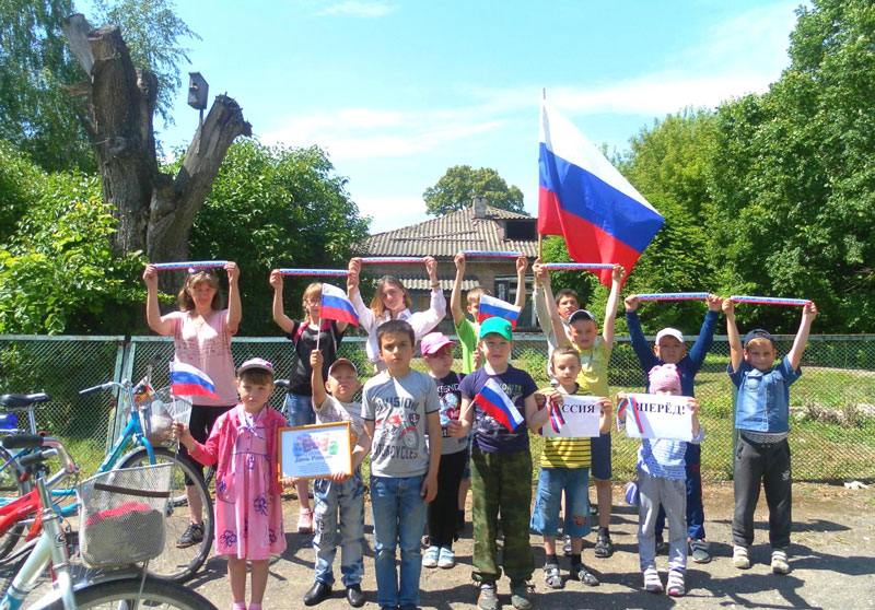 Во время маршрута они поздравили жителей села с Днем России, подарили памятки с информацией по истории праздника и трехцветные ленточки, символизирующие российский триколор. На детской площадке к участникам акции присоединилась Анечка Клеблеева – самая маленькая россиянка нашего села. Поздравления с Днем России прозвучали на языках пяти народностей, проживающих на территории нашего села. Праздник удался на славу!