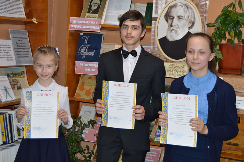 По традиции прозвучало вступительное слово библиотекаря, познакомившего присутствующих с интересными фактами из жизни Ивана Сергеевича Тургенева. Конкурсанты младшего возраста читали отрывок из рассказа «Бежин луг», стихотворения «Гроза» и «Осень», в которых природа описана очень красочно и реалистично. Возрастная категория постарше выбрала для прочтения стихотворения в прозе, которые считаются в русской литературе образцом этого своеобразного жанра. Именно в их прочтении стихотворения «Воробей» и «Голуби», «Милостыня» и «Истина в правде» нашли отклик в душе каждого слушателя.