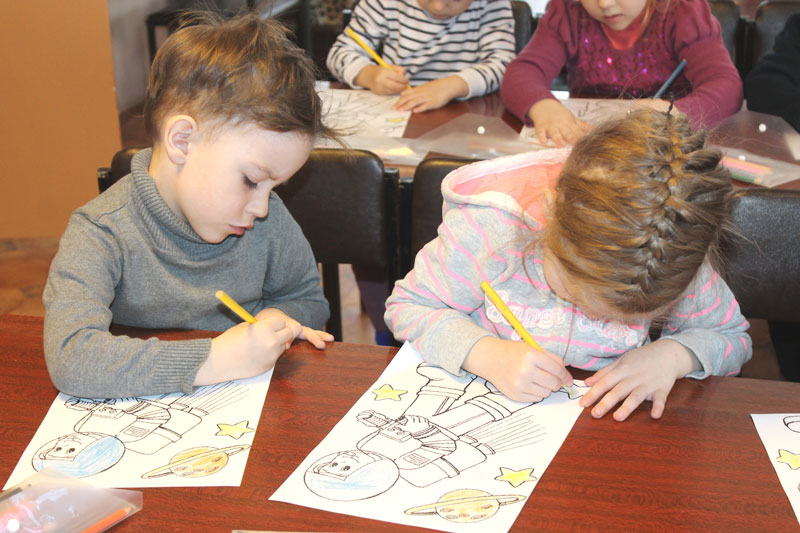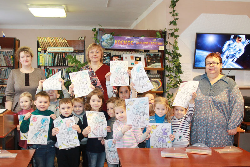 На утреннике ребятам рассказали о полете человека в космос, показали документальные кадры из истории космонавтики и научно-популярный ролик о строении Вселенной. Дети с удовольствием разгадывали загадки, отвечали на вопросы викторины и раскрашивали картинку с космонавтом.
